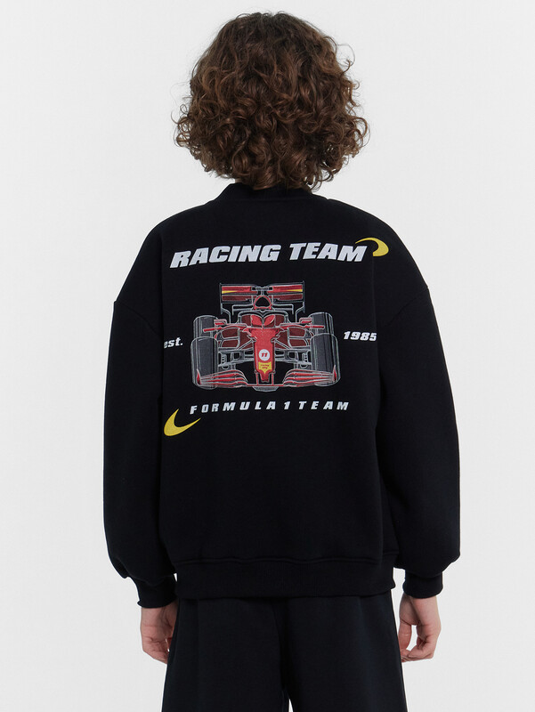 Жакет свободного кроя. Боковые швы к низу перенесены вперед. Круглый вырез горловины. В горловину втачан воротник-стойка из рибаны. Плечо спущено, пройма углубленна. Рукава втачные, длинные. По низу рукавов манжеты из рибаны. В боковых швах карманы . По низу изделия отрезной пояс из рибаны.