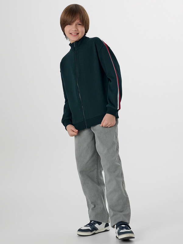Горловина круглая с воротником стойкой из рибаны. Рукава втачные длинные по верху рукава настрочены лампасы из кулирки. По низу отрезные манжеты из рибаны.