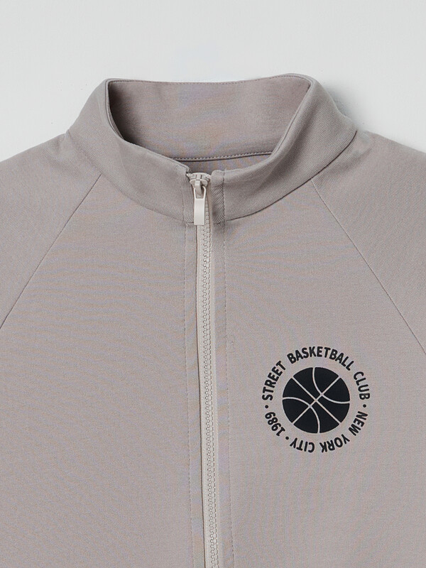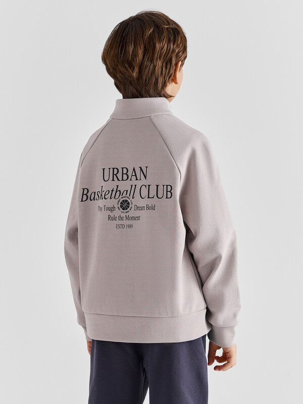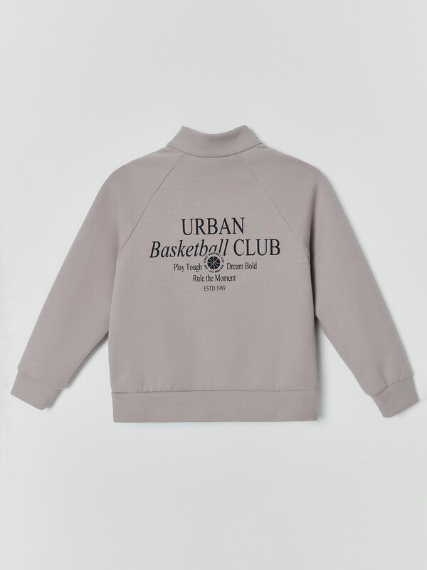 Толстовка свободного силуэта. В горловину втачен воротник-стойка из основного полотна. Рукава втачные, длинные - реглан. По низу рукава манжеты из основного полотна. По переду застежка на молнию. По низу изделия отрезной пояс из основного полотна.