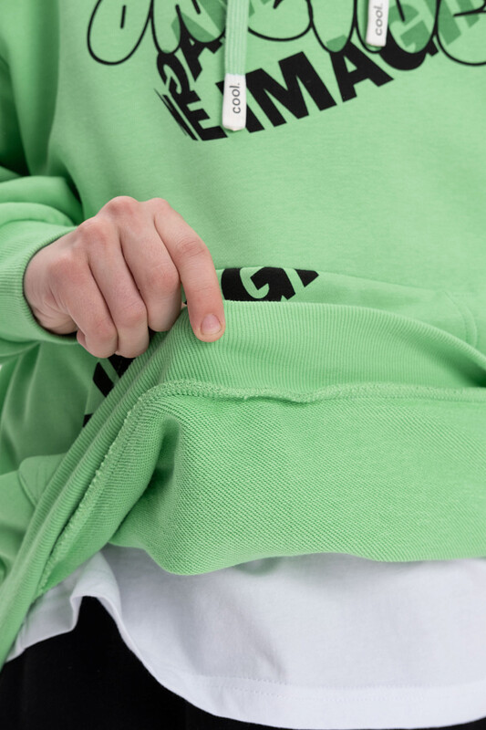 Худи для мальчика без начеса – актуальная вещь в любом сезоне, будь то весна, лето или осень. Кофта спортивная для мальчика выполнена из плотного футера-петля, который отлично согревает в прохладную погоду и при этом хорошо пропускает воздух – ребенок активно двигается, играет, не потеет. Толстовка свободного покроя оверсайз со спущенным плечом, углубленной проймой. Рукава а также низ изделия на манжете из рибаны. Удобный карман кенгуру. Капюшон на запахе со шнурками для регулировки. Изделие выполнено в актуальном стиле Digital и понравится юным геймерам, а также любителям одежды в корейском стиле и в стиле аниме. По переду текстовый принт. Перевод принта "be different" - будь разным, "imagine online" - представь себе онлайн. Размерный ряд подходит как для малышей так и для подростков.