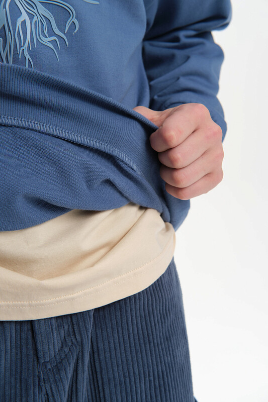 Свитшот без начеса из материала футер-петля. Манжеты и низ изделия из рибаны. Толстовка весенняя украшена выпуклым резиновым принтом, а также надписью. Перевод надписи: "grow down to grow up" - расти вниз (в смысле "пустить корни"), чтобы вырасти вверх. В составе ткани преобладает высококачественый хлопок — спортивная кофта приятна на ощупь и прекрасно пропускает воздух. Тонкую кофту можно носить круглый год. Широкая размерная сетка подойдет как для малыша так и для подростка.