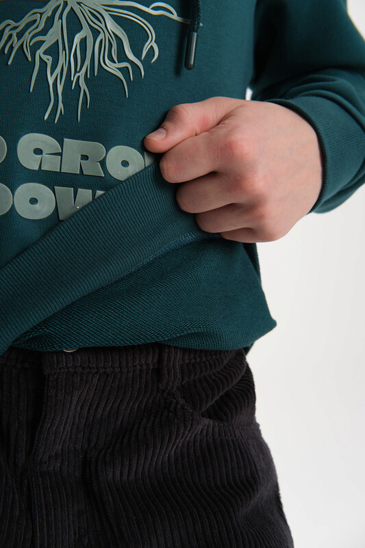 Худи для мальчика без начеса – актуальная вещь в любом сезоне, будь то весна, лето или осень. Кофта спортивная для мальчика выполнена из плотного футера-петля, который отлично согревает в прохладную погоду и при этом хорошо пропускает воздух – ребенок активно двигается, играет, не потеет. Толстовка свободного покроя оверсайз со спущенным плечом, углубленной проймой. Рукава а также низ изделия на манжете из рибаны. Кофта без карманов. Капюшон на запахе со шнурками для регулировки. Пайта для мальчика украшена по переду выпуклым резиновым принтом, а также надписью. Перевод принта "grow down to grow up" - расти вниз, чтобы вырасти вверх. Размерный ряд подходит как для малышей так и для подростков.