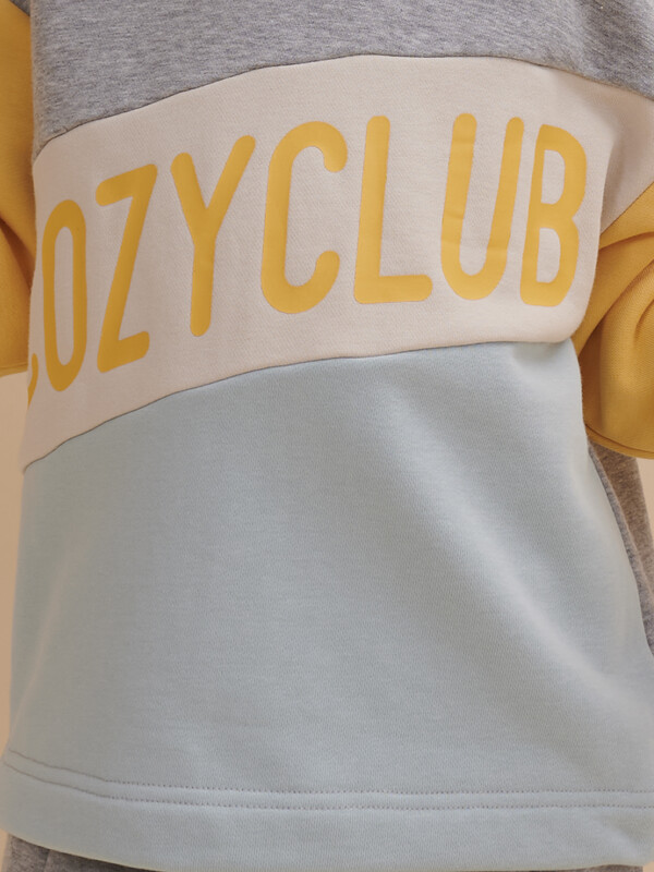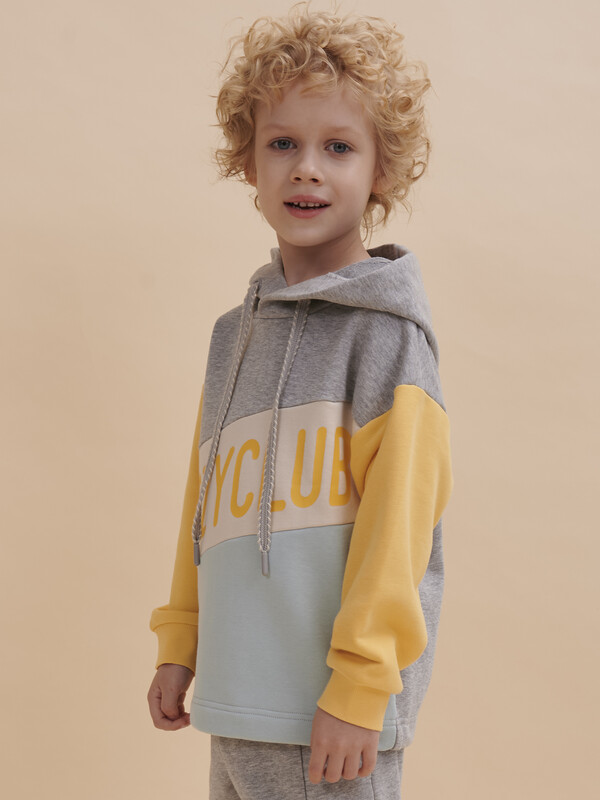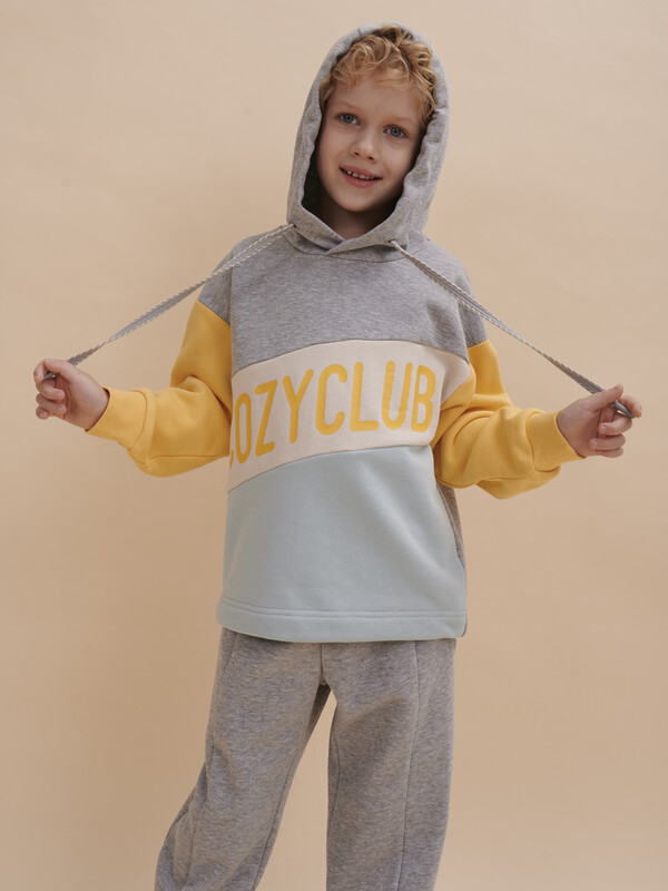 Изделие выполнено в актуальном стиле колорблок в мягкой, нежной ретро-пастели. Худи для мальчика подростка оверсайз в сером цвете украшено по переду вставкой из основного материала контрастного цвета с текстовым принтом: "Cozy Club" - перевод "Уютный клуб". Толстовка оверсайз рассчитана на возраст садика и школы. Понравится как малышам, так и школьникам и подросткам. Размерная линейка: 1 (86); 2 (92); 3 (98); 4 (104); 5 (110); 6 (116); 7 (122); 8 (128); 9 (134); 10 (140); 11 (146).