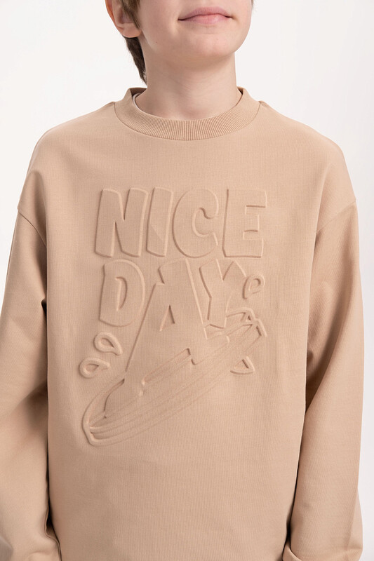 Свитшот без начеса из материала футер-петля. Манжеты и низ изделия из рибаны. Толстовка весенняя украшена выпуклым выдавленным принтом - надписью. Перевод надписи "nice day" - прекрасный день. В составе ткани преобладает высококачественый хлопок — спортивная кофта приятна на ощупь и прекрасно пропускает воздух. Тонкую кофту можно носить круглый год. Широкая размерная сетка подойдет как для малыша так и для подростка.