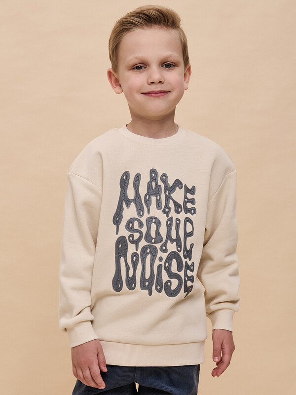Свитшот детский для мальчика. Свободная толстовка со спущенным плечом и углубленной проймой подарит ребёнку комфорт и стнет стильным дополнением гардероба. Объёмный джемпер средней длины — актуальный модный тренд. Манжеты, отделка горловины и низа изделия выполнены из эластичной рибаны (ткани в рубчик). Она не растягивается, отлично сохраняет форму, при этом ребёнку удобно надевать и снимать свитшот. Модель неприхотлива в уходе. Свитшот с принтом по переду выполнен из футера с начёсом. Принт тактильно приятный, мягкий и эластичный, великолепно переносит частые стирки. Надпись переводится: «немного пошуметь». В составе ткани преобладает высококачественый хлопок — толстовка приятна на ощупь и прекрасно пропускает воздух. Полиэстер помогает сохранить цвет и первозданный внешний вид надолго. Детский свитшот выполнен в в универсальных цветах, которые легко сочетать с любыми брюками, джинсами. Оверсайз-свитшот подходит как для маленьких мальчиков, так и для подростков. Джемпер идеален для детского сада, прогулок, активного отдыха, дома. Свитшот с начесом можно носить круглый год. Помните о правильном уходе за изделием: рекомендуется стирать при температуре не выше 30 °C, без предварительного замачивания, с изнанки. Это поможет сохранить качество и цвет свитшота на длительное время.