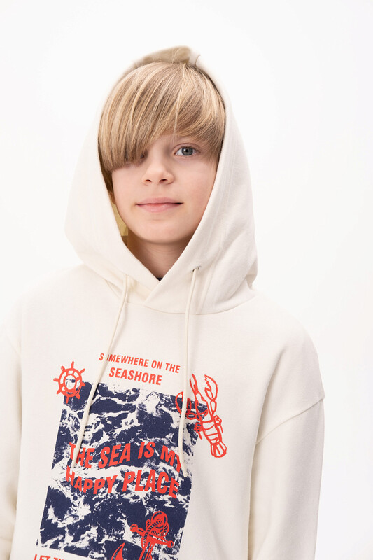 Худи для мальчика без начеса – актуальная вещь в любом сезоне, будь то весна, лето или осень. Кофта спортивная для мальчика выполнена из плотного футера-петля, который отлично согревает в прохладную погоду и при этом хорошо пропускает воздух – ребенок активно двигается, играет, не потеет. Толстовка свободного покроя оверсайз со спущенным плечом, углубленной проймой. Рукава а также низ изделия на манжете из рибаны. Кофта без карманов. Капюшон с регулировкой объема. По переду изделие украшено принтом с надписью. Перевод надписей "somewhere on the seashore" - где-то на побережье, "the sea is my happy place" - море-мое счастливое место, "let the sea set you free" - позвольте морю освободить вас, "sea.gulls.waves.anchors.ships.wind" - море.чайки.волны.якоря.корабли.ветер. Размерный ряд подходит как для малышей так и для подростков.