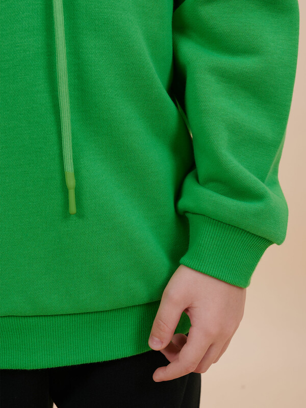 Трикотажная толстовка для мальчика подростка с капюшоном выполнена с высоким содержанием хлопка и добавлением в состав эластана. Приятный к телу материал отлично носится, не дает усадки, не линяет в процессе стирки и сохраняет красивый внешний вид. Хлопок хорошо пропускает воздух, наделяет необходимой гигроскопичностью – ребенок активно двигается, играет, не потеет.