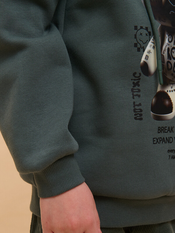 Толстовка детская из футера с начёсом для мальчика. Худи трендового оверсайз-силуэта со спущенным плечом подарит ребёнку комфорт и не будет стеснять его движений. Толстовка с капюшоном защитит от холода и ветра. Модель дополнена манжетами из эластичной рибаны по низу и рукавам. Рибана не растягивается и надолго сохраняет отличный внешний вид. Изделие неприхотливо в уходе. Толстовка на мальчика выполнена из ткани с высоким содержанием хлопка — модель мягкая, воздухопроницаемая и гипоаллергенная. Благодаря полиэстеру худи износостойкое, сохраняет форму даже после множества стирок. Изделие выполнено в универсальной расцветке, без проблем сочетается с любыми брюками, джинсами. Толстовка по переду декорирована принтом в актуальном готическом стиле, надписи переводятся: «креативное настроение», «нарушать правила», «расширяйте границы своих возможностей каждый день с 7 утра до 11 вечера», «не в настроении, не токсичный, будь радостным». Принты эластичные и устойчивые, не боятся частых стирок. Отличное худи оверсайз для мальчиков дошкольного и младшего школьного возраста, а также подростков. Джемпер подходит для детского сада, прогулок, отдыха, дома. Худи с капюшоном для мальчика подходят для круглогодичной носки. Помните о правильном уходе за изделием: рекомендуется стирать при температуре не выше 30 °C, без предварительного замачивания, с изнанки. Это поможет сохранить качество и цвет толстовки на длительное время.