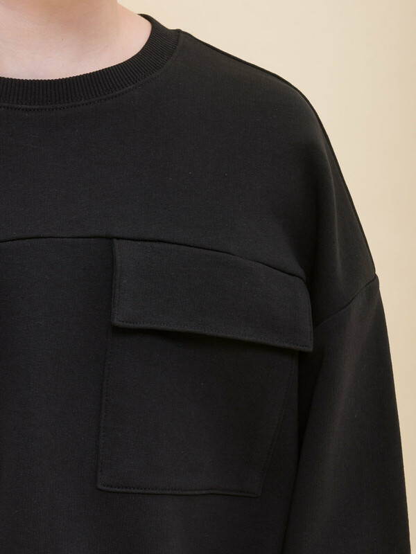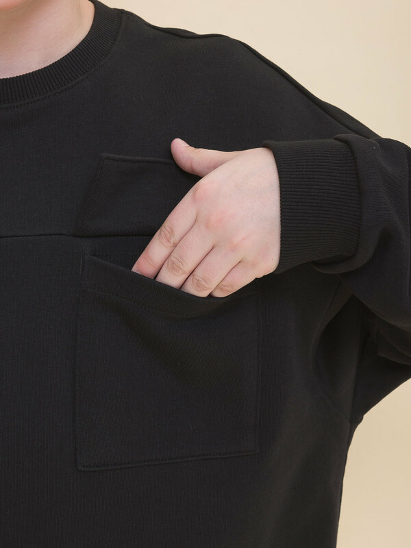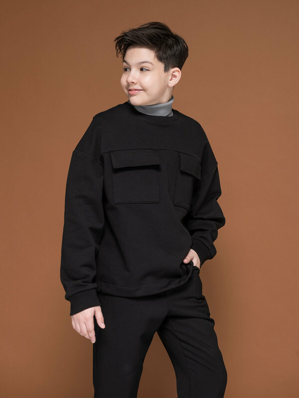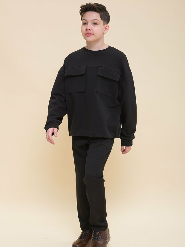 Толстовка из футера оверсайз-силуэта со спущенным плечом для мальчика. В составе ткани 100% хлопка — изделие мягкое, дышащее и приятное на ощупь. Горловина и манжеты отделаны рибаной — удобно надевать и снимать, рукава не сползают. По низу изделия внутренний эластик со стопперами по бокам — с их помощью можно регулировать объём и менять силуэт. На груди два накладных кармана с клапанами для хранения важных мелочей. Актуальная и стильная модель оверсайз-силуэта подходит мальчикам с разными типами фигуры. Можно брать на вырост — благодаря объёму толстовка будет словно «расти» вместе с ребёнком, долго не станет малой. Модный и практичный вариант школьной одежды для мальчиков.