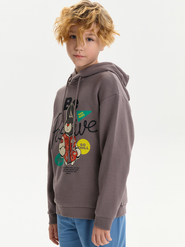 Худи из терри свободного покроя "оверсайз" со спущенным плечом, углубленной проймой. Низ рукава и низ изделия на манжете из рибаны. Капюшон двухшовный с запахом и люверсами, высота капюшона регулируется с помощью шнурка. Перевод текстов: Будь позитивным; почему бы и нет?; Так чилово; Ультра круто; Позитивное мышление; позволит тебе сделать; все лучше чем негативное
