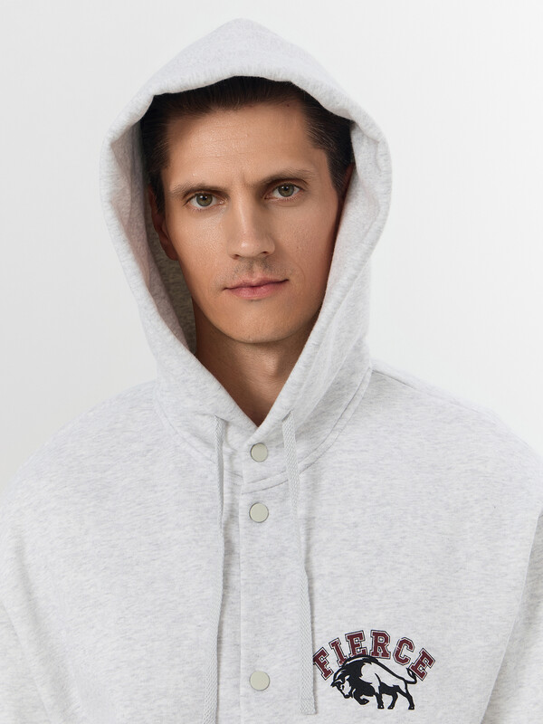 По переду обработана центральная застежка на кнопки, верхняя кнопка распологается на капюшоне.