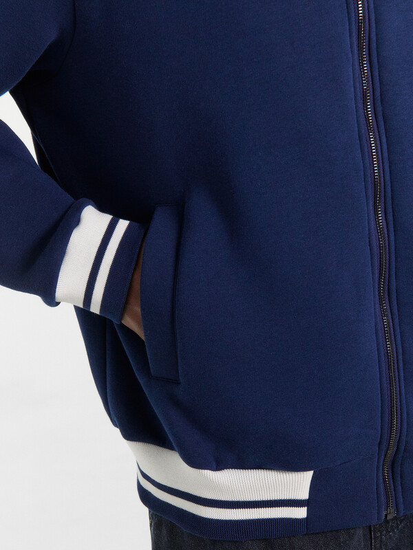 Стильная мужская толстовка в спортивном стиле. Выполнена их трикотажного футера с теплым и нежным подчесом. Силуэт свободный и прямой, длина до середины бедер. Вырез круглый, классический, с воротником-стойкой из довяза. Рукава длинные. Есть удобные боковые карманы. По центру толстовка застегивается на молнию. Отличная модель для отдыха, спорта и городских образов!
