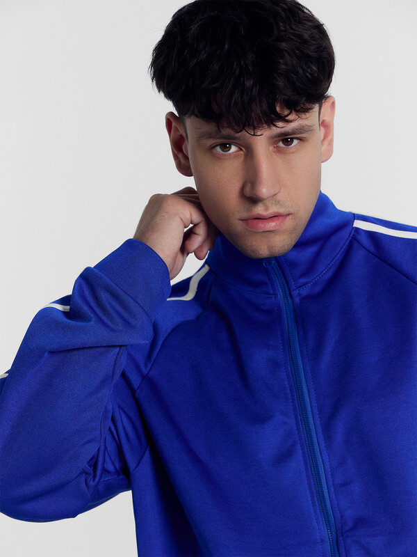 Рукав реглан, с отрезными манжетами. По центру рукава настрочены лампасы из кулирки.