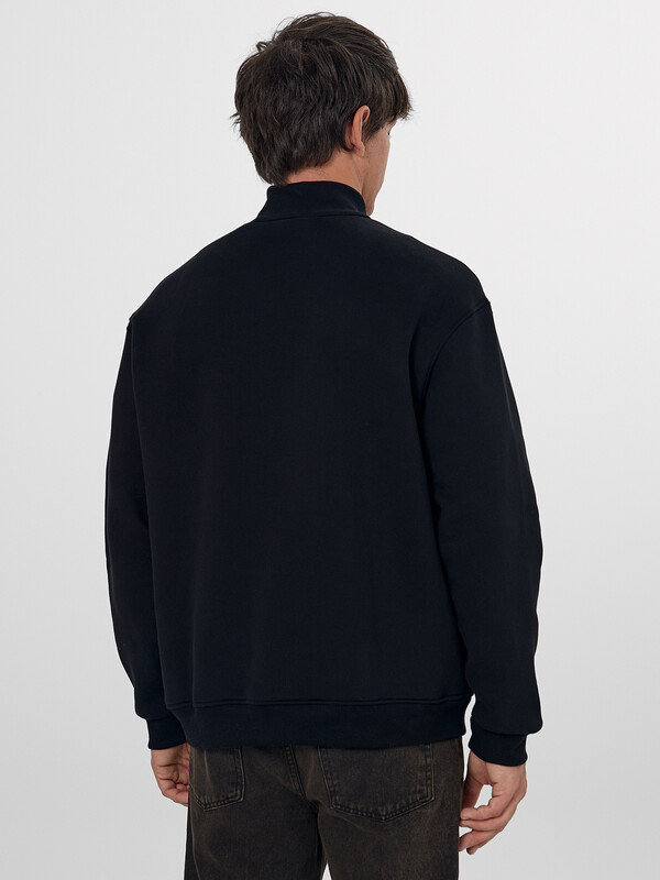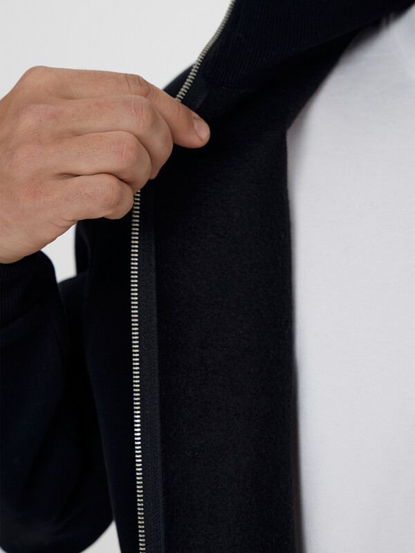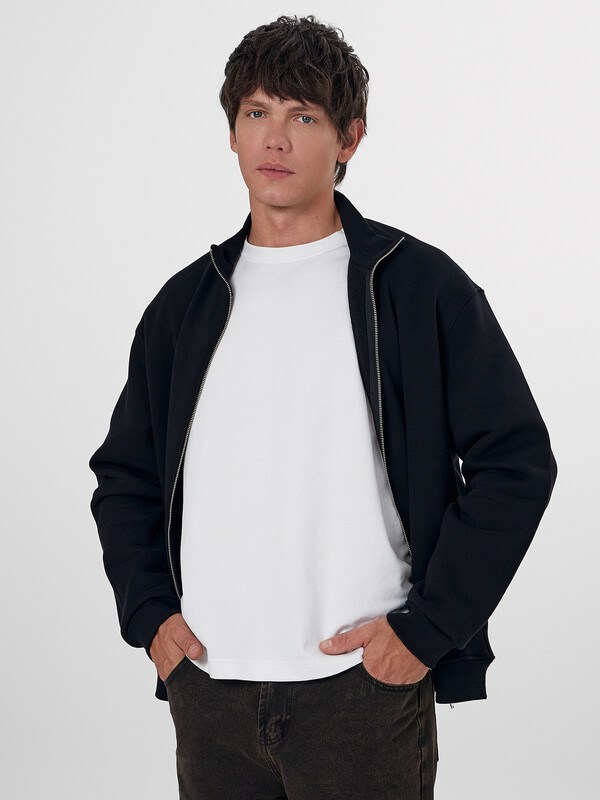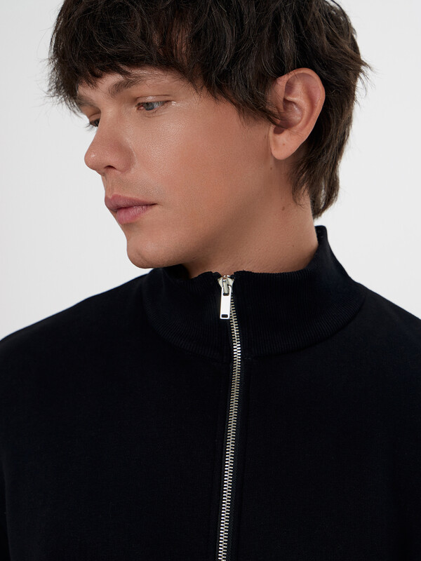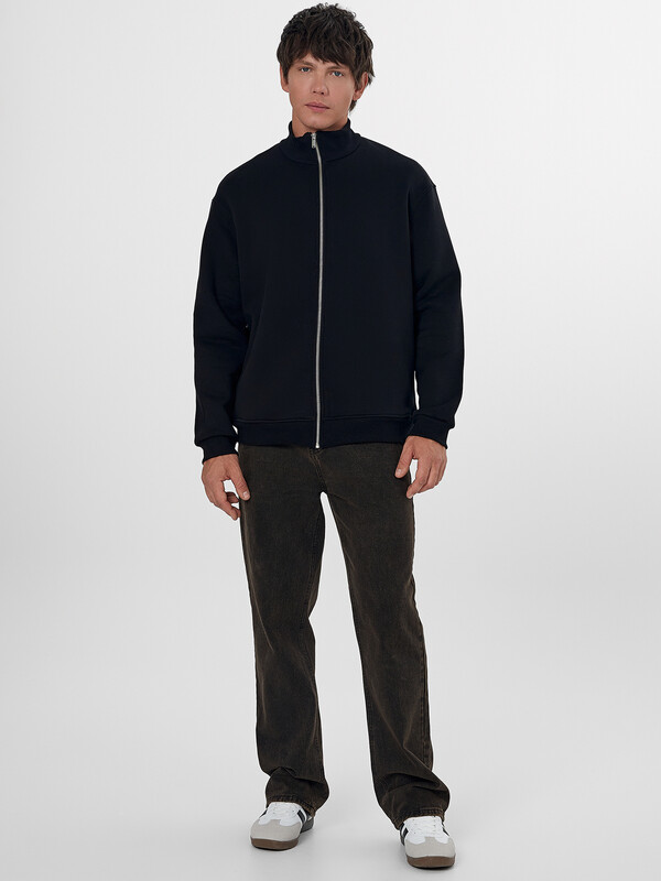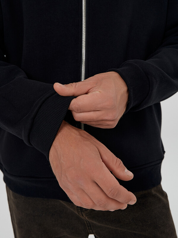 Мужская толстовка прямого силуэта из трикотажного футера с подчесом — практичный и универсальный выбор для прохладных дней. Материал обладает мягкостью и умеренной плотностью, отлично удерживает тепло и приятно ощущается на теле. Округлая горловина с воротником из рибаны аккуратно оформлена и надежно фиксируется, сохраняя форму при носке. Спущенная линия плеча и длинные рукава с рибаной на манжетах обеспечивают комфорт и расслабленный силуэт, подходящий для любого типа фигуры. Центральная застежка на тесьму-молнию позволяет легко надевать и снимать изделие, а также добавляет практичности и динамичного настроения. Пояс из рибаны по низу завершает образ и фиксирует посадку, не давая ткани растягиваться. Толстовка легко комбинируется с джинсами, спортивными брюками или шортами, отлично подходит для города, загородных поездок или активного отдыха.