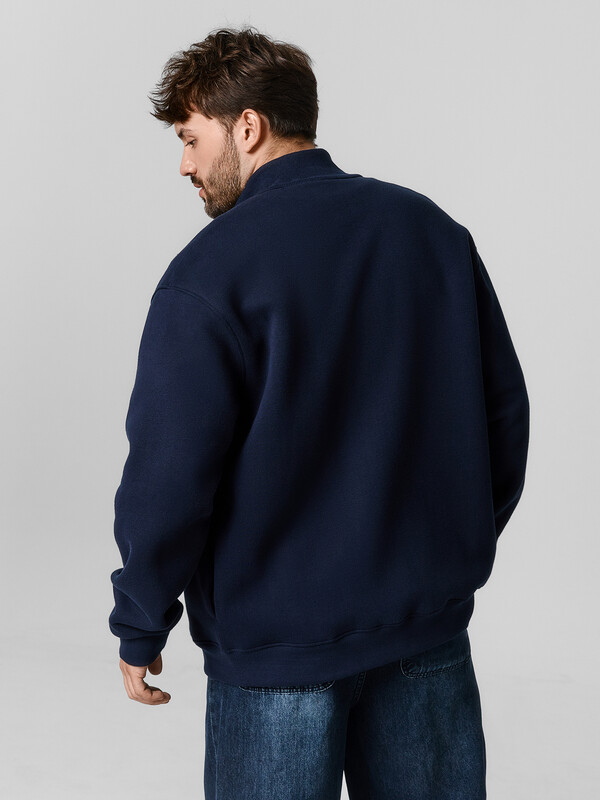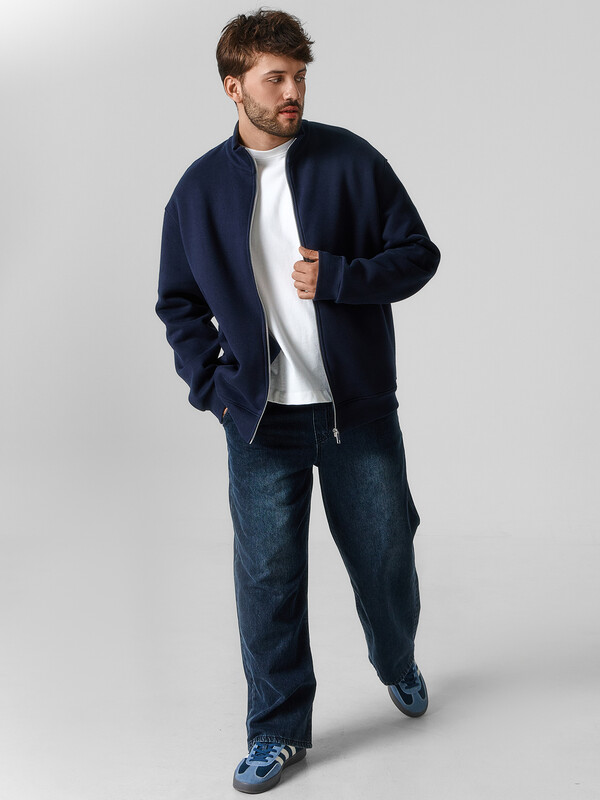 Мужская толстовка прямого силуэта из трикотажного футера с подчесом — практичный и универсальный выбор для прохладных дней. Материал обладает мягкостью и умеренной плотностью, отлично удерживает тепло и приятно ощущается на теле. Округлая горловина с воротником из рибаны аккуратно оформлена и надежно фиксируется, сохраняя форму при носке. Спущенная линия плеча и длинные рукава с рибаной на манжетах обеспечивают комфорт и расслабленный силуэт, подходящий для любого типа фигуры. Центральная застежка на тесьму-молнию позволяет легко надевать и снимать изделие, а также добавляет практичности и динамичного настроения. Пояс из рибаны по низу завершает образ и фиксирует посадку, не давая ткани растягиваться. Толстовка легко комбинируется с джинсами, спортивными брюками или шортами, отлично подходит для города, загородных поездок или активного отдыха.