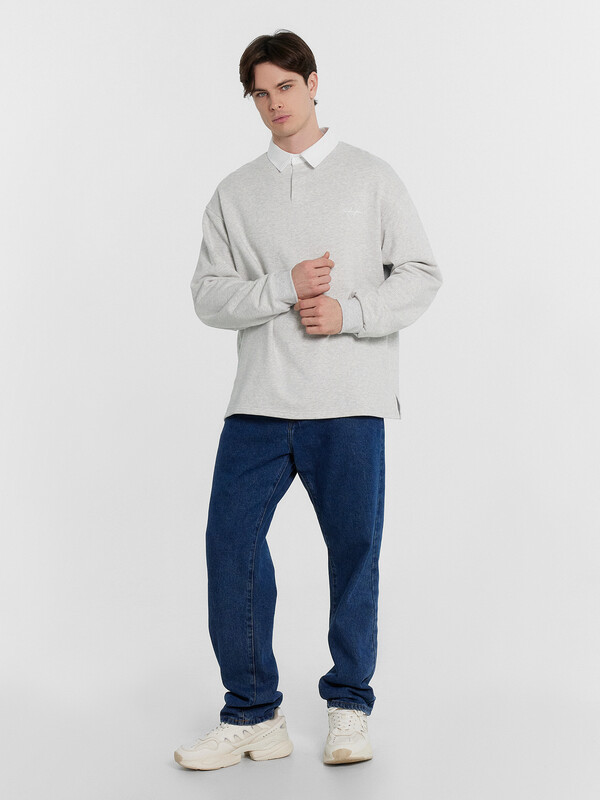 Мужской свитшот с имитацией воротника рубашки - стильная новинка, которую непременно стоит добавить в ваш гардероб. Модель выполнена из футера - мягкого и теплого материала, обеспечивающего комфорт и уют в холодное время года. Свитшот свободного кроя с длинными рукавами и спущенной линией плеча прекрасно подойдет для создания стильного расслабленного образа. Застежка на петли и пуговицы придает изделию элегантный вид, а боковые декоративные разрезы добавляют уникальности и завершенности образу. Этот свитшот станет отличным дополнением к любому гардеробу, сочетая в себе актуальный дизайн и комфорт.