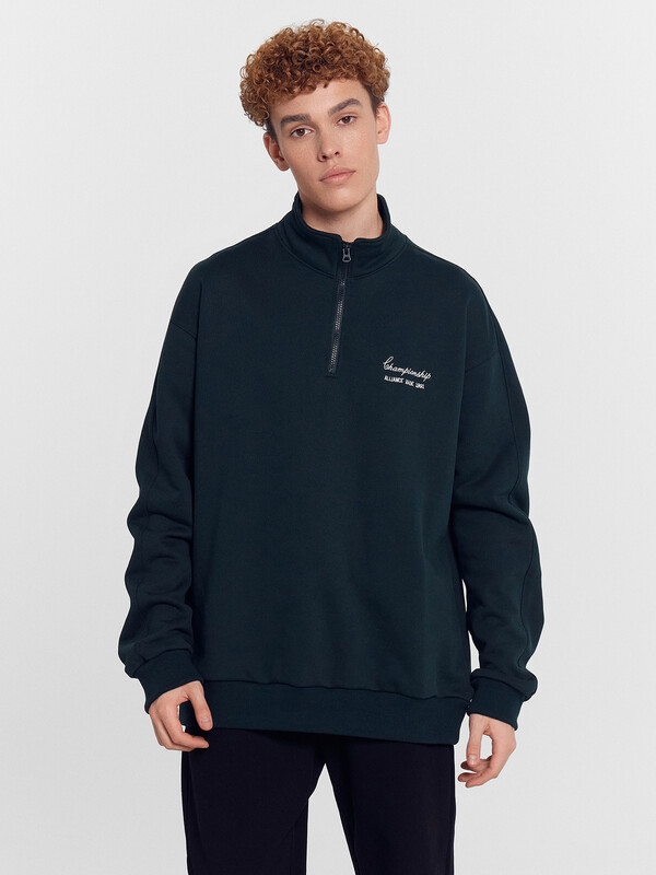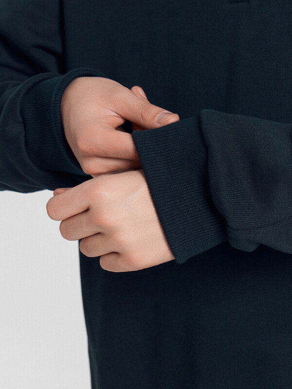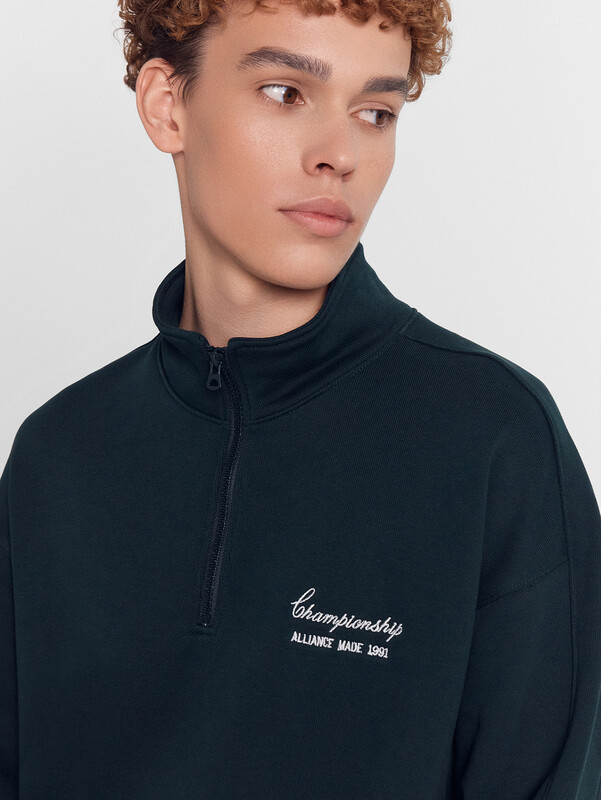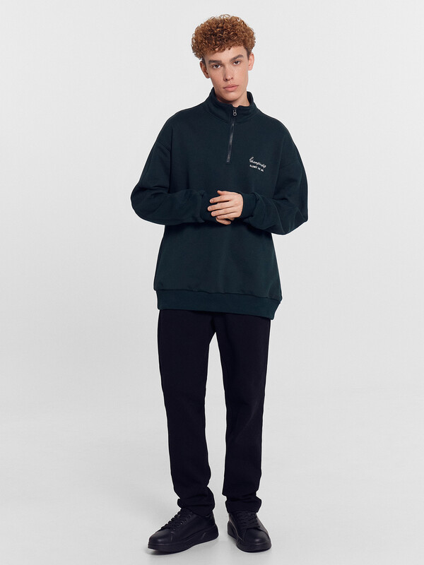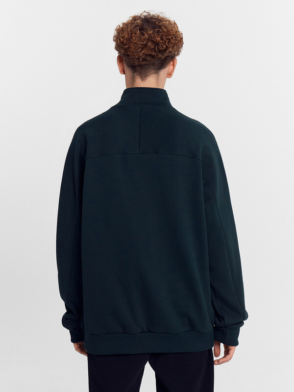 Мужская толстовка на молнии идеальна для стильных повседневных образов. Модель свободного силуэта с воротником-стойкой и длинными рукавами с эластичными манжетами обеспечивает комфорт и практичность. Легко надевается и снимается благодаря застежке-молнии. Линия плеча слегка спущена, что добавляет модели современный и расслабленный вид. Она выполнена из футера без подчеса, что делает ее легкой и приятной к телу, сохраняя при этом тепло. Эта толстовка станет прекрасным дополнением вашего гардероба, обеспечивая уют и стиль каждый день.