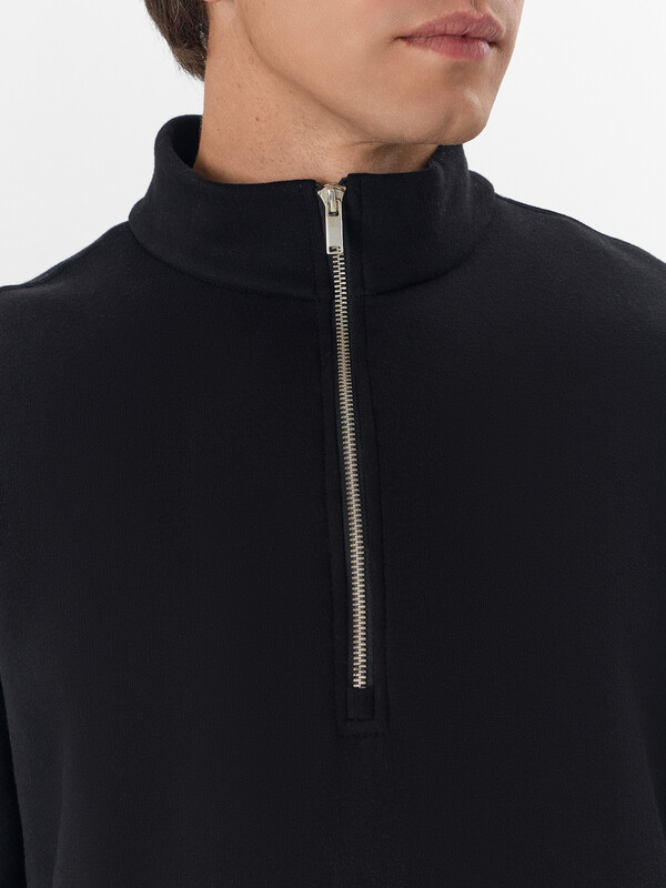 Горловина округлой формы с воротником стойкой из основного полотна.