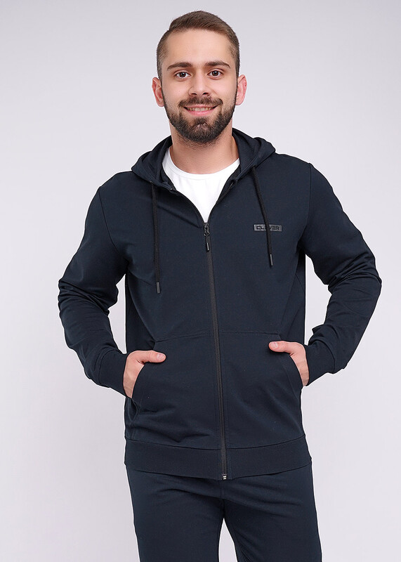 Модная куртка с капюшоном на молнии из плотного трикотажного полотна будет незаменимой вещью в гардеробе любого мужчины, благодаря функциональным карманам "кенгуру" и стильной отделке в виде нашивок.