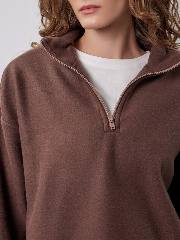 Представляем невероятно мягкую и нежную толстовку, которая станет отличным дополнением вашего гардероба. Модель свободного силуэта с круглой горловиной и воротником-стойкой обеспечивает максимальный комфорт. Центральная застежка на молнию и длинные рукава со спущенной линией плеча делают эту толстовку удобной и практичной. А боковые карманы с подкладкой из кулирки добавляют удобство и функциональность. Изделие выполнено из флиса - мягкого, теплого и дышащего материала, который быстро сохнет и прекрасно сохраняет тепло. Флис также является легким и долговечным, обеспечивая уют и комфорт в любую погоду.