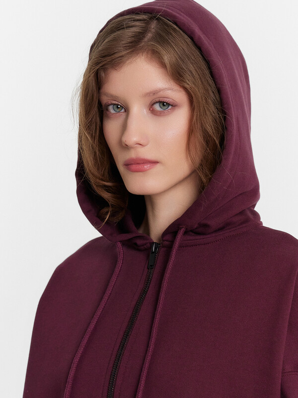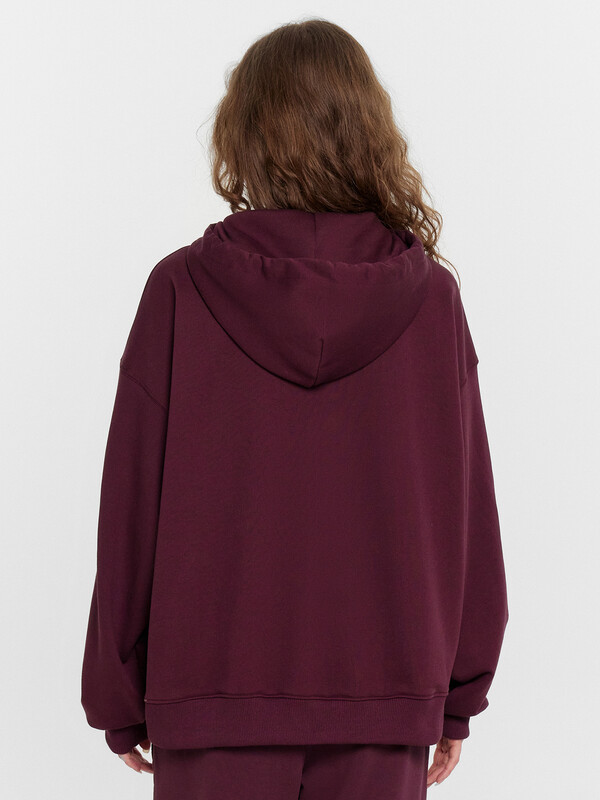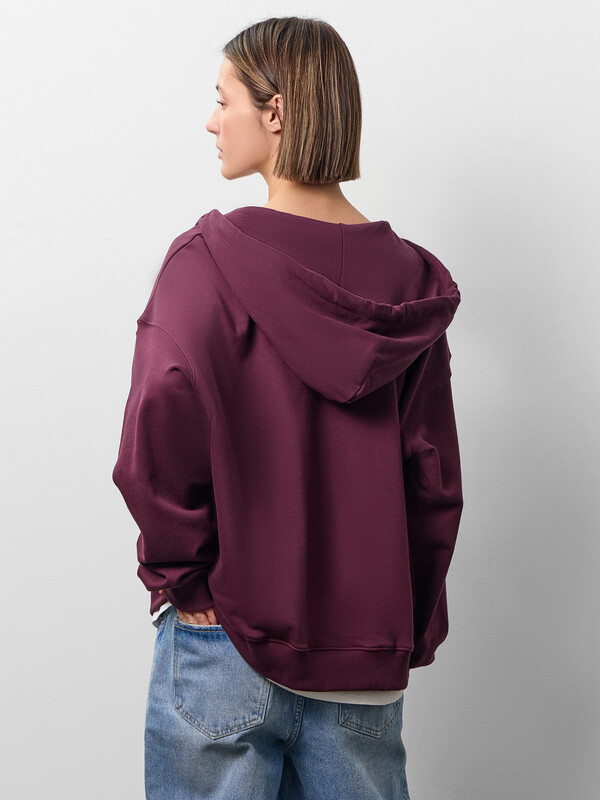 Толстовка прямая свободная, оверсайз. Горловина округлой формы с капюшоном. Капюшон цельнокроеный с подкладкой. На внешней стороне пробиты петли и втянут шнур (8EKXWC-1 8мм с эглетами). Шов втачивания