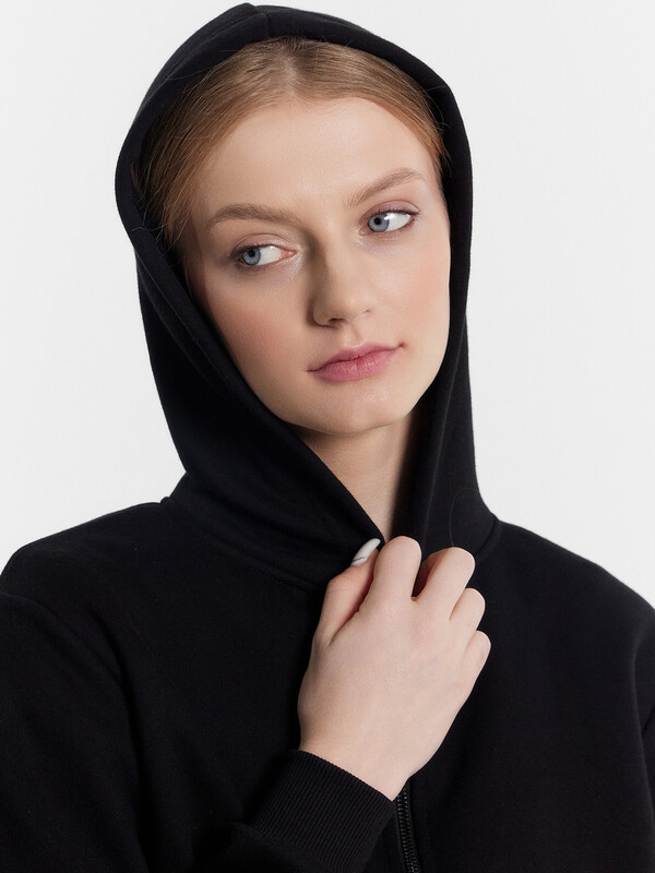 Спортивная женская толстовка из футера с теплым и нежным подчесом. Свободный силуэт, вырез круглой формы, слегка спущенная линия плеча, длинные рукава на манжетах. Уютный капюшон будет полезным для занятий бегом по утрам. Спереди застегивается на центральную застежку-молнию. Благодаря составу ткани, специальному крою и конструкции, толстовка идеально подходит для спортивных занятий – не сковывает движений и не натирает, а ткань отлично отводит влагу, гипоаллергенна и воздухопроницаема.