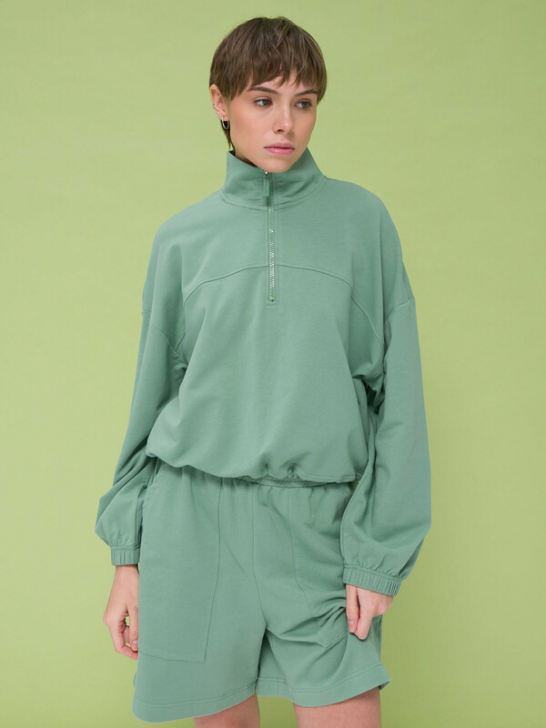Укороченная женская толстовка кроп-топ из футера. Теплая, мягкая, приятная на ощупь ткань с 96% хлопка в составе – почти не мнется, сохраняет форму даже после частых стирок. Комфортный воротник-стойка выполнен из основной ткани. Тракторная молния у горловины максимально прочная, не заедает. Низ рукава собран на резинку и обработан основной тканью. Фишка модели в меняющемся силуэте – кулиску на талии можно зафиксировать по боковым швам стопперами. Толстовка великолепно комбинируется с джоггерами или шортами. Подходит на каждый день, незаменима для активного отдыха, спорта и путешествий.