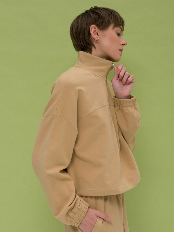 Укороченная женская толстовка кроп-топ из футера. Теплая, мягкая, приятная на ощупь ткань с 96% хлопка в составе – почти не мнется, сохраняет форму даже после частых стирок. Комфортный воротник-стойка выполнен из основной ткани. Тракторная молния у горловины максимально прочная, не заедает. Низ рукава собран на резинку и обработан основной тканью. Фишка модели в меняющемся силуэте – кулиску на талии можно зафиксировать по боковым швам стопперами. Толстовка великолепно комбинируется с джоггерами или шортами. Подходит на каждый день, незаменима для активного отдыха, спорта и путешествий.