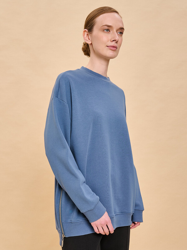 Свитшот женский без начеса. Толстовка расслабленного силуэта-кокон со спущенным плечом подарит вам комфорт и станет стильным дополнением гардероба. Спинка джемпера длиннее переда — актуальный модный тренд. Манжеты, отделка горловины и низа изделия выполнены из эластичной широкой рибаны (ткани в рубчик). Она не растягивается, отлично сохраняет форму, при этом свитшот удобно надевать и снимать. Модель неприхотлива в уходе. Оверсайз свитшот выполнен из плотного и приятного на ощупь футера — в составе ткани преобладает высококачественный хлопок, ткань дышит. Полиэстер помогает сохранить цвет и первозданный внешний вид надолго. Женский свитшот выполнен в универсальных цветах, который легко сочетать с любыми брюками, джинсами, юбками, платьями — можно создать много красивых образов. Толстовка декорирована небольшим объёмным принтом в виде первой буквы логотипа бренда. Стильная фишка модели — в боковых швах разрезы на металлических молниях. Однотонный оверсайз-свитшот — базовый элемент повседневного женского гардероба. Свитшот без начеса можно носить круглый год. Помните о правильном уходе за изделием: рекомендуется стирать при температуре не выше 30 °C, без предварительного замачивания, с изнанки. Это поможет сохранить качество и цвет свитшота на длительное время.