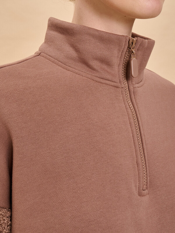 Стильный женский свитшот свободного силуэта со спущенным плечом. Толстовка без капюшона выполнена в комбинации двух материалов: гладкого футера и фактурного меха «барашек». Это актуальный модный тренд. Толстовка с воротником-стойкой. Он защитит от холода и ветра. Застёжка на короткую молнию — удобно и быстро застёгивать и расстёгивать. По низу удобная кулиска — можно регулировать объём и посадку. Свитшот однотонный, без принта. Изделие неприхотливо в уходе, его легко стирать, ткань быстро сохнет и не склонна к образованию катышков. В составе основной ткани (футкер с начесом) преобладает качественый хлопок — толстовка мягкая, отлично дышит. Рукава выполнены из мягкого и приятного на ощупь бербер-флиса (фактура «барашка»). Свитшот представлен в двух универсальных цветах: чёрном и молочном. Его легко сочетать с различными моделями брюк. Размерная линейка: XS (42); S (44); M (46); L (48). Толстовка идеальна как для женщин, так и для девушек и девочек-подростков. Подходит и высоким, и невысоким девушкам. Оверсайз-свитшот — прекрасный выбор для повседневной носки и активного отдыха. Он тёплый, лёгкий и мягкий. Для круглогодичного применения: прохладным летом, осенью, зимой, весной и демисезон. Это модный и практичный подарок для сестры, подруги или дочки на любой праздник.