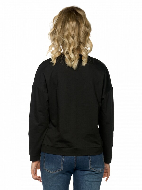 Свитшот женский среднего объема из пластичного футера со слегка спущенным плечом, комфортным объемом рукава, манжетами из основной ткани и стойким эластичным принтом с элементами глянца в шрифте. Перевод Делай это с любовью, а не ради любви. Свободный ум. Перевод с японского Наша любовь в наших сердцах.