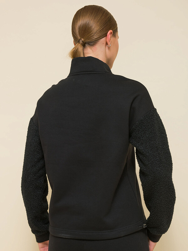 Стильный женский свитшот свободного силуэта со спущенным плечом. Толстовка без капюшона выполнена в комбинации двух материалов: гладкого футера и фактурного меха «барашек». Это актуальный модный тренд. Толстовка с воротником-стойкой. Он защитит от холода и ветра. Застёжка на короткую молнию — удобно и быстро застёгивать и расстёгивать. По низу удобная кулиска — можно регулировать объём и посадку. Свитшот однотонный, без принта. Изделие неприхотливо в уходе, его легко стирать, ткань быстро сохнет и не склонна к образованию катышков. В составе основной ткани (футкер с начесом) преобладает качественый хлопок — толстовка мягкая, отлично дышит. Рукава выполнены из мягкого и приятного на ощупь бербер-флиса (фактура «барашка»). Свитшот представлен в двух универсальных цветах: чёрном и молочном. Его легко сочетать с различными моделями брюк. Размерная линейка: XS (42); S (44); M (46); L (48). Толстовка идеальна как для женщин, так и для девушек и девочек-подростков. Подходит и высоким, и невысоким девушкам. Оверсайз-свитшот — прекрасный выбор для повседневной носки и активного отдыха. Он тёплый, лёгкий и мягкий. Для круглогодичного применения: прохладным летом, осенью, зимой, весной и демисезон. Это модный и практичный подарок для сестры, подруги или дочки на любой праздник.