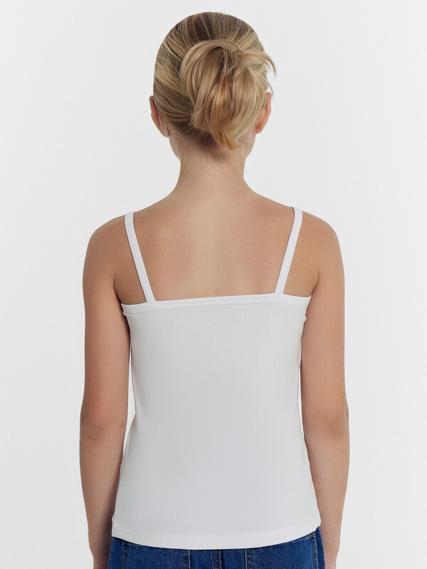 Лаконичная майка на бретелях для девочек. Изготовлена из натурального хлопкового полотна. Силуэт прилегающий, длина до середины бедер. Универсальная и очень практичная майка!