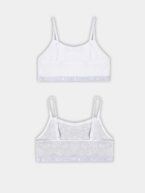 Хлопковое бюстье прилегающего силуэта для девочек. Выполнено из легкой и приятной к телу трикотажной рибаны. Вырез горловины и проймы окантованы эластичной тесьмой. На бретелях есть кольца-регуляторы. По нижнему краю бюстье расположена удобная и стильная жаккардовая тесьма. Идеально!
