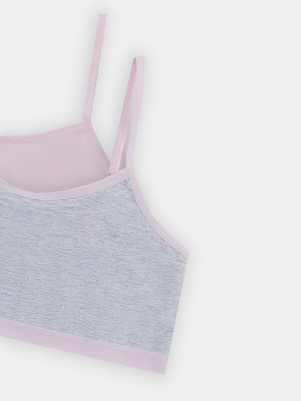 Верхний срез переда, проймы переходящий в бретель и верхний срез спинки обработанф эл. тесьмой 15мм (ловабль F1-15, артекс E2366). На бретелях пластиковые кольца-регуляторы 8 мм.