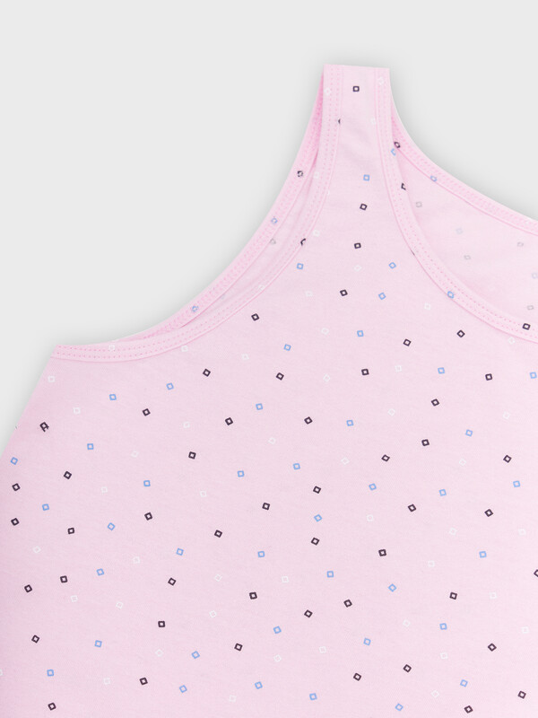 Майка для девочек, выполненная из трикотажной кулирки. Длина до середины бедер. Силуэт полуприлегающий. Горловина круглая. Универсальная майка!
