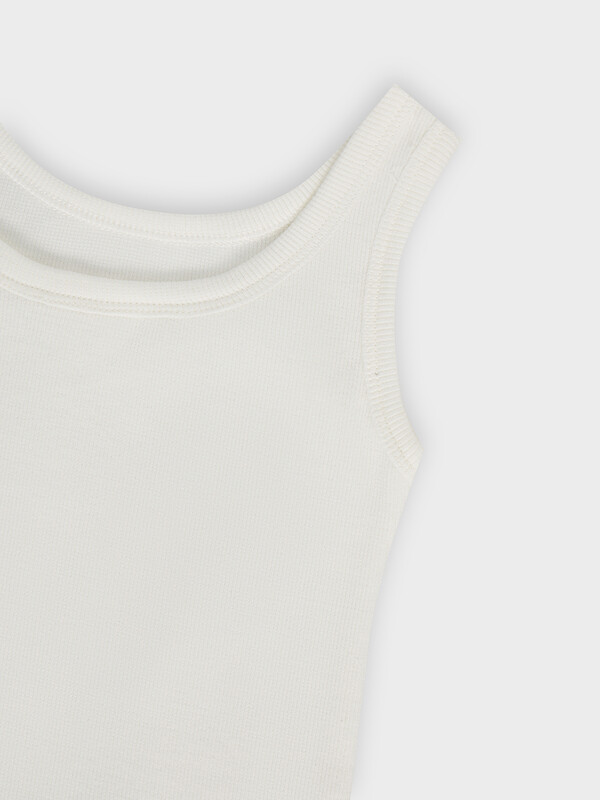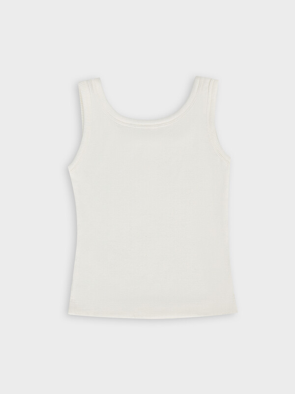Майка прилегающего силуэта без рукавов. Длина до середины бедер. Горловина круглая. Проймы и горловина окантованы бейкой из основного полотна. Низ изделия обработан на 2х игольной плоскошовной машине.