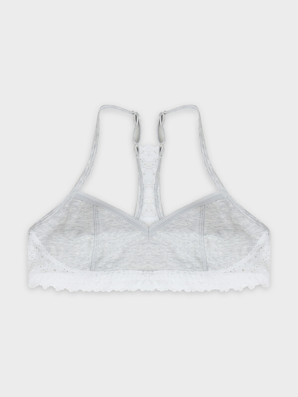Элегантное бюстье для девочек, изготовленное из эластичного трикотажного полотна и кружева. Чашки на подкладке, стан кружевной. Бретели регулируются сзади и крепятся к детали спинки при помощи колец. Очень комфортная и романтичная модель!