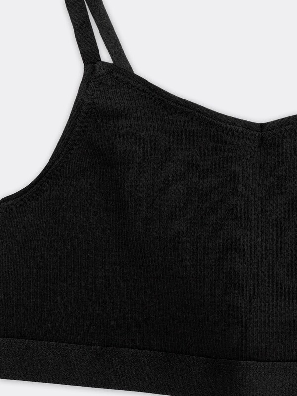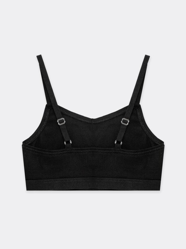 Хлопковое бюстье прилегающего силуэта для девочек. Выполнено из легкой и приятной к телу трикотажной рибаны. Вырез горловины и проймы окантованы эластичной тесьмой. На бретелях есть кольца-регуляторы. По нижнему краю бюстье расположена удобная и стильная жаккардовая тесьма. Идеально!