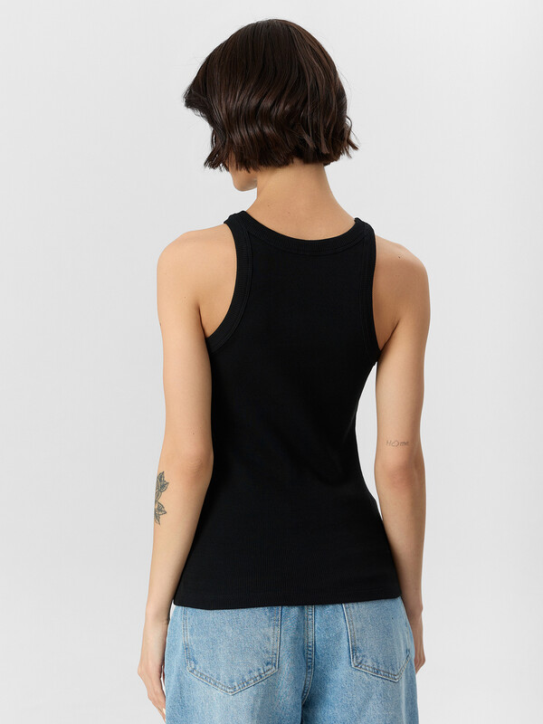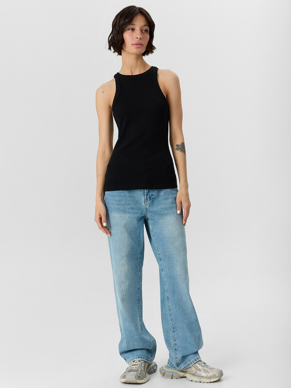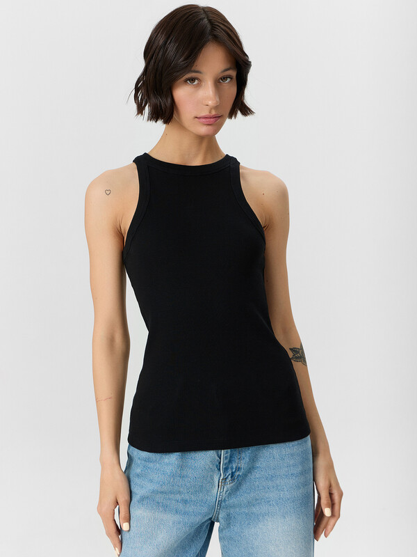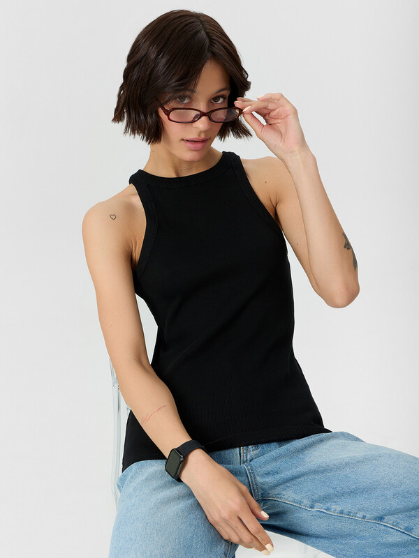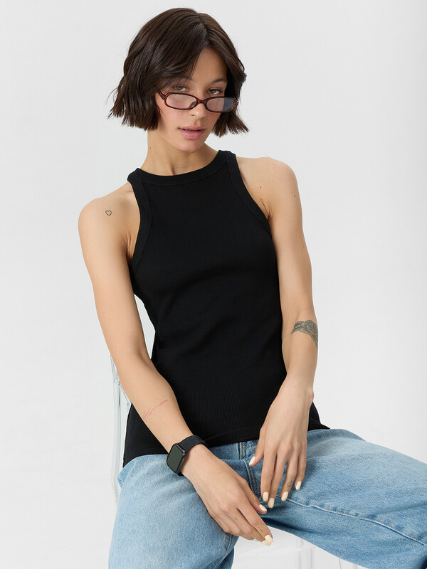 Стильный топ из трикотажной рибаны с фактурой в рубчик — прекрасный выбор для создания универсальных и элегантных образов! Прилегающий силуэт подчеркивает фигуру, а длина до линии бедер делает модель удобной и подходящей для любой ситуации. Округлый вырез добавляет классической простоты и изящества, что позволяет легко сочетать топ как с повседневными джинсами, так и с нарядными юбками. Материал из трикотажной рибаны отличается мягкостью, эластичностью и комфортом, оставаясь при этом стильным благодаря текстуре в рубчик. Такой топ станет базовым элементом гардероба, который идеально впишется в любую комбинацию, от делового до спортивного или вечернего наряда! Настоящий must-have для стильных и практичных решений.