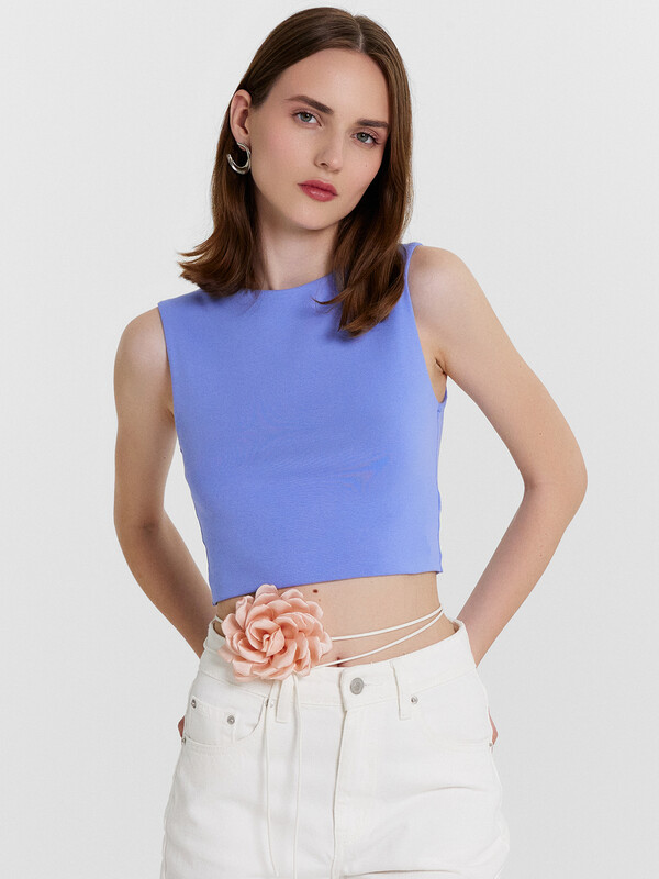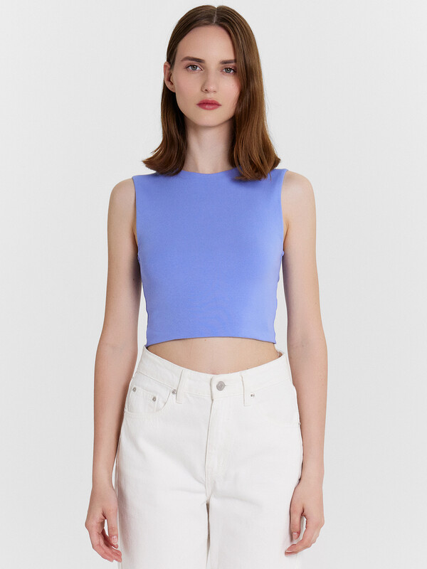 Топ женский прилегающего силуэта из трикотажного полотна рибана. Горловина круглой формы.