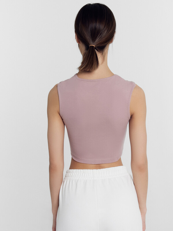 Топ женский прилегающего силуэта из трикотажного полотна рибана. Горловина круглой формы.