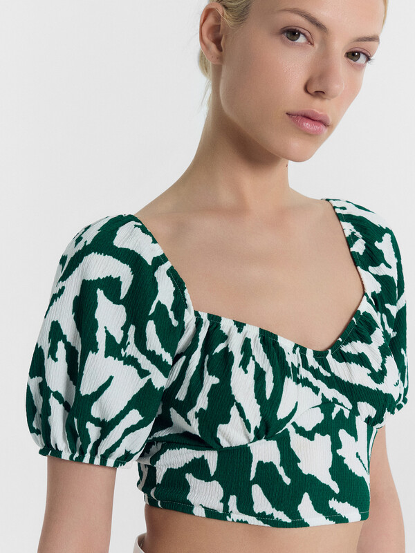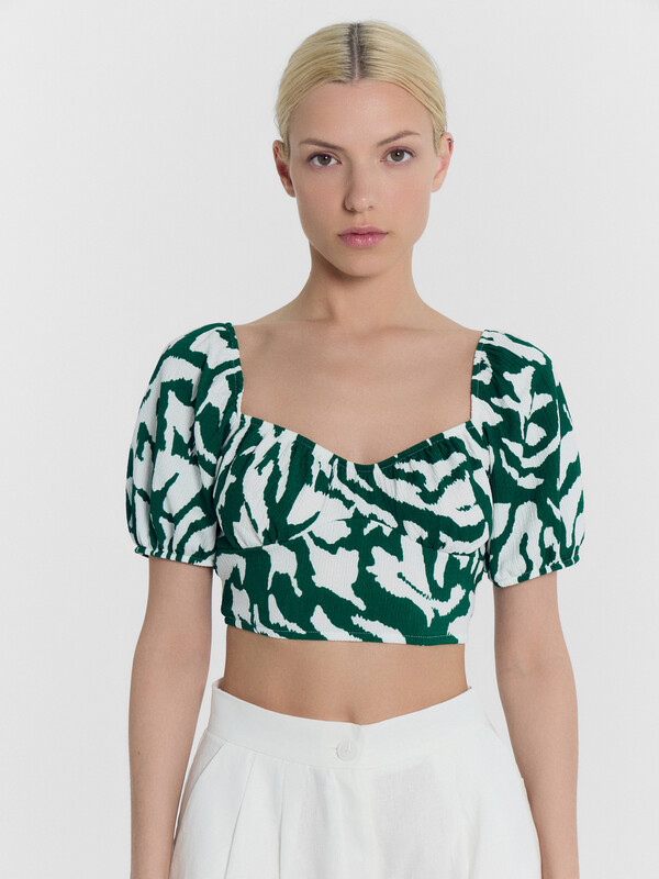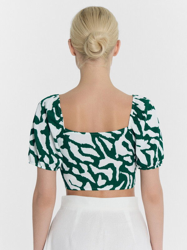 Топ женский укороченный из ткани рашель с рукавами.