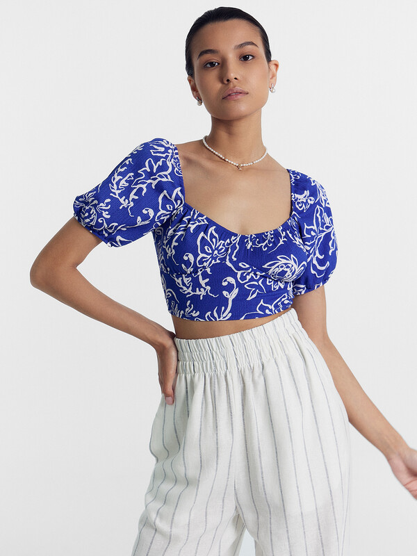 Топ женский укороченный из ткани рашель с рукавами.