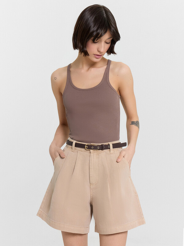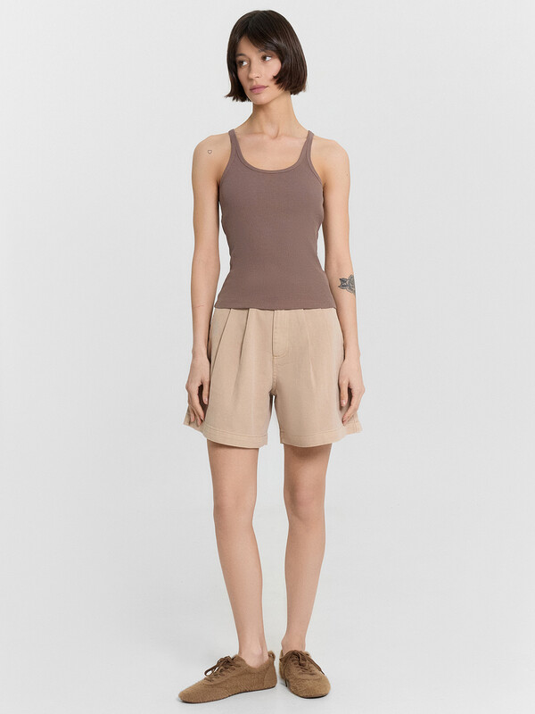 Женский топ прилегающего силуэта — стильный и комфортный элемент гардероба, который подчеркивает женственность и элегантность. Модель выполнена из трикотажной рибаны — мягкого и эластичного материала, который обеспечивает удобную посадку, адаптируясь к движениям тела. Округлая горловина придает классический акцент, а тонкие бретели создают легкий и изящный образ, красиво акцентируя линию плеч и декольте. Срезы горловины и проймы окантованы бейками из основного полотна, что обеспечивает аккуратный вид и дополнительную прочность. Топ отлично сочетается с разными элементами одежды, позволяя создавать стильные образы — от повседневных до более элегантных и вечерних. Идеальный выбор для тех, кто ценит комфорт, женственность и утонченный стиль!
