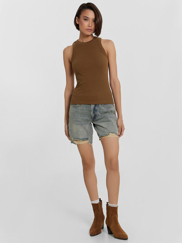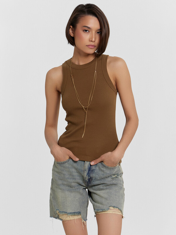 Лаконичный топ из рибаны — это универсальная модель, которая идеально сочетается с элегантным стилем и практичностью. Выполненный из эластичного трикотажного материала с фактурой в рубчик, топ обладает высокой прочностью и долговечностью, обеспечивая устойчивость к деформации и комфорт при длительном ношении. Материал отлично удерживает форму и сохраняет первоначальный внешний вид, что делает изделие надежным выбором для гардероба. Благодаря отличной воздухопроницаемости, рибана позволяет коже дышать, создавая чувство свежести и легкости на протяжении всего дня. Гипоаллергенные свойства материала делают его безопасным для чувствительной кожи, обеспечивая приятные тактильные ощущения. Облегающий силуэт и круглая горловина подчеркивают фигуру и придают изделию утонченную элегантность, что делает этот топ подходящим для самых разных случаев. Независимо от того, сочетается ли он с джинсами, юбкой или брюками, топ легко впишется в любой образ, добавляя ему стильный и аккуратный акцент. Отличный выбор для повседневной носки!
