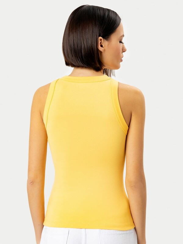 Горловина и проймы окантованы широкой бейкой из основного полотна.