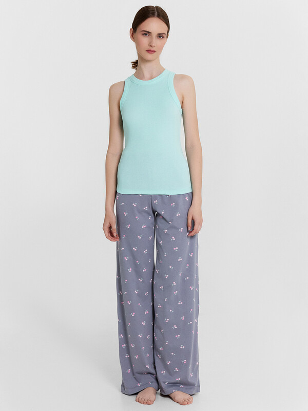 Низ изделия обработан швом вподгибку на плоскошовной машине.