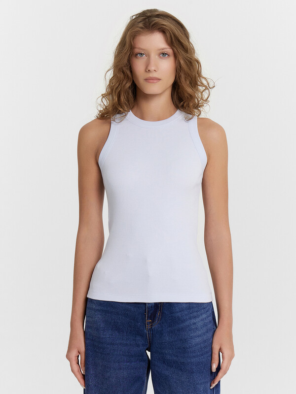 Горловина и проймы окантованы широкой бейкой из основного полотна.
