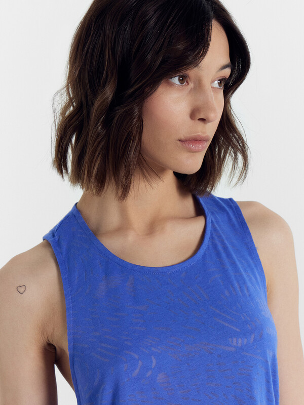 Горловина переда и проймы окантованы бейкой и застрочена в чистый край.